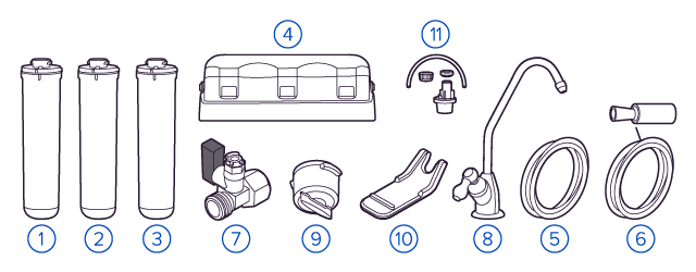 Картриджи последовательно очищают воду и от видимых примесей, и от растворенных. Первый картридж задерживает более крупные частицы, а каждый последующий - более мелкие. Чем больше ступеней - тем лучше фильтр очистит воду: поймает более мелкие видимые частицы ржавчины, песка и ила, успеет захватить из воды максимум растворенных примесей - хлора, нитратов, тяжелых металлов и других.