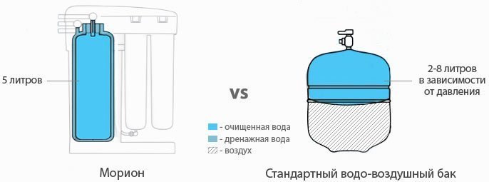 Обычно нужна в фильтрах обратного осмоса. Глубокая фильтрация требует времени. Чтобы Вам не приходилось ждать, пока вода наберется в чайник или кастрюлю, почти во всех моделях используется накопительный бак для чистой воды или другая емкость. В стандартном фильтре обратного осмоса под мойку воды в баке достаточно для семьи из 5-6 человек.