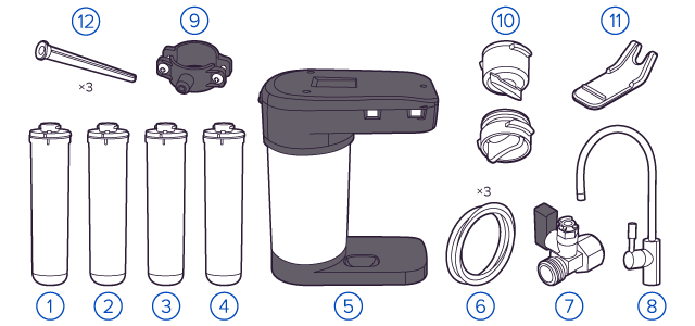 Картриджи последовательно очищают воду и от видимых примесей, и от растворенных. Первый картридж задерживает более крупные частицы, а каждый последующий - более мелкие. Чем больше ступеней - тем лучше фильтр очистит воду: поймает более мелкие видимые частицы ржавчины, песка и ила, успеет захватить из воды максимум растворенных примесей - хлора, нитратов, тяжелых металлов и других.