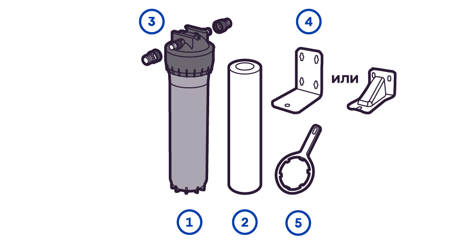 Готовый фильтр состоит из корпуса и картриджа для очистки воды. Если вы приобретаете только корпус, необходимо отдельно купить подходящий к нему картридж: это может быть картридж для механической очистки воды от ржавчины, картридж для глубокой очистки воды от хлора.