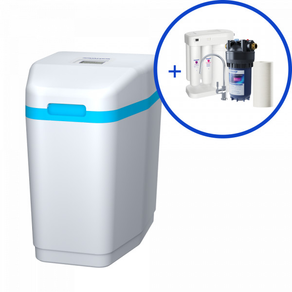 Малогабаритная система умягчения воды с обратноосмотической системой очистки и предфильтрацией в подарок