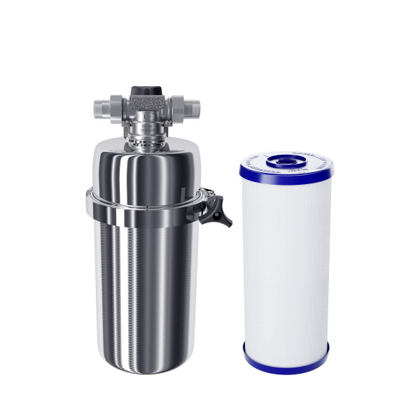 Не забывайте учитывать и срок службы фильтра: он указан в паспорте и определяет, когда модуль нужно заменить, даже если ресурс активной фильтрации в литрах еще есть.25000Вес, кг (нетто) изделия5,8Высота, смОбратите внимание на габариты фильтра и измерьте, сколько свободного пространства в предполагаемом месте установки.42,5Механическая фильтрацияЗадерживает ржавчину, ил, песок, как “сито”. Если в фильтре несколько картриджей - первый отсекает самые крупные частицы, а каждый последующий - более мелкие. Существуют картриджи, в которых есть только механическая очистка (полипропиленовые, не “впитывают” растворенные примеси). Они обычно стоят первыми по ходу воды, чтобы продлить жизнь угольным (сорбционным) картриджам, которые ещё и впитывают вредные примеси, как губка.даСорбцияСпособность “впитывать” из воды растворенные, “невидимые” вредные примеси, по принципу губки. Активированный уголь - основной сорбционный материал, который используется в картриджах фильтров для питьевой воды. Например, именно так из воды удаляется хлор.даФильтрует частицы крупнее, мкмЧем меньше цифра, тем более мелкие частицы способен задержать фильтр. Например, любой фильтр под мойку справится с ржавчиной, илом и песком, но не каждый - с бактериями (на это способен картридж с половолоконной мембраной и системы обратного осмоса). Если в фильтре несколько картриджей - первый отсекает самые крупные частицы, а каждый последующий - более мелкие. Цифра указана для картриджа самой тонкой очистки.1,0Фильтрующий модуль в комплектедаДавление в водопроводе не более, атмМаксимальное давление воды на входе в систему, при котором возможна стабильная работа фильтра.6,5Ширина, смОбратите внимание на габариты фильтра, и измерьте, сколько свободного пространства в предполагаемом месте установки.18,0Глубина, смОбратите внимание на габариты фильтра, и измерьте, сколько свободного пространства в предполагаемом месте установки.18,0Защита корпуса от гидроударовдаСкорость фильтрации, л/минСкорость подачи отфильтрованной воды из крана чистой воды на мойке. Например, при скорости фильтрации 2,5 литра/минуту стакан 200 мл. наполнится меньше, чем за 10 секунд.7,0КомплектацияГотовый фильтр состоит из корпуса и картриджа для очистки воды. Если вы приобретаете только корпус, необходимо отдельно купить подходящий к нему картридж: это может быть картридж для механической очистки воды от ржавчины, картридж для глубокой очистки воды от хлора.готовый фильтрВодаКартриджи и корпуса фильтров рассчитаны на определенную температуру воды. Данные технические характеристики важно учитывать, поскольку от этого зависит качество очистки и срок службы фильтра.холоднаяМатериал корпусаПищевой пластик: Допущен к контакту с пищевыми продуктами. Нержавеющая сталь: Долговечный и безопасный корпус из нержавеющей пищевой стали.нержавеющая стальОчисткаМеханическая очистка: Задерживает ржавчину, ил, песок, как “сито”. В корпусе предфильтра с механической очисткой установлен полипропиленовый модуль. Глубокая очистка: Подходит, чтобы купать детей в чистой воде. Делает прием душа и умывание более приятным. Фильтр глубокой очистки воды во всей квартире не только останавливает ржавчину, ил, песок, но и впитывает растворенные опасные примеси, как губка. Удаляет из воды хлор, хлорорганические вещества, 